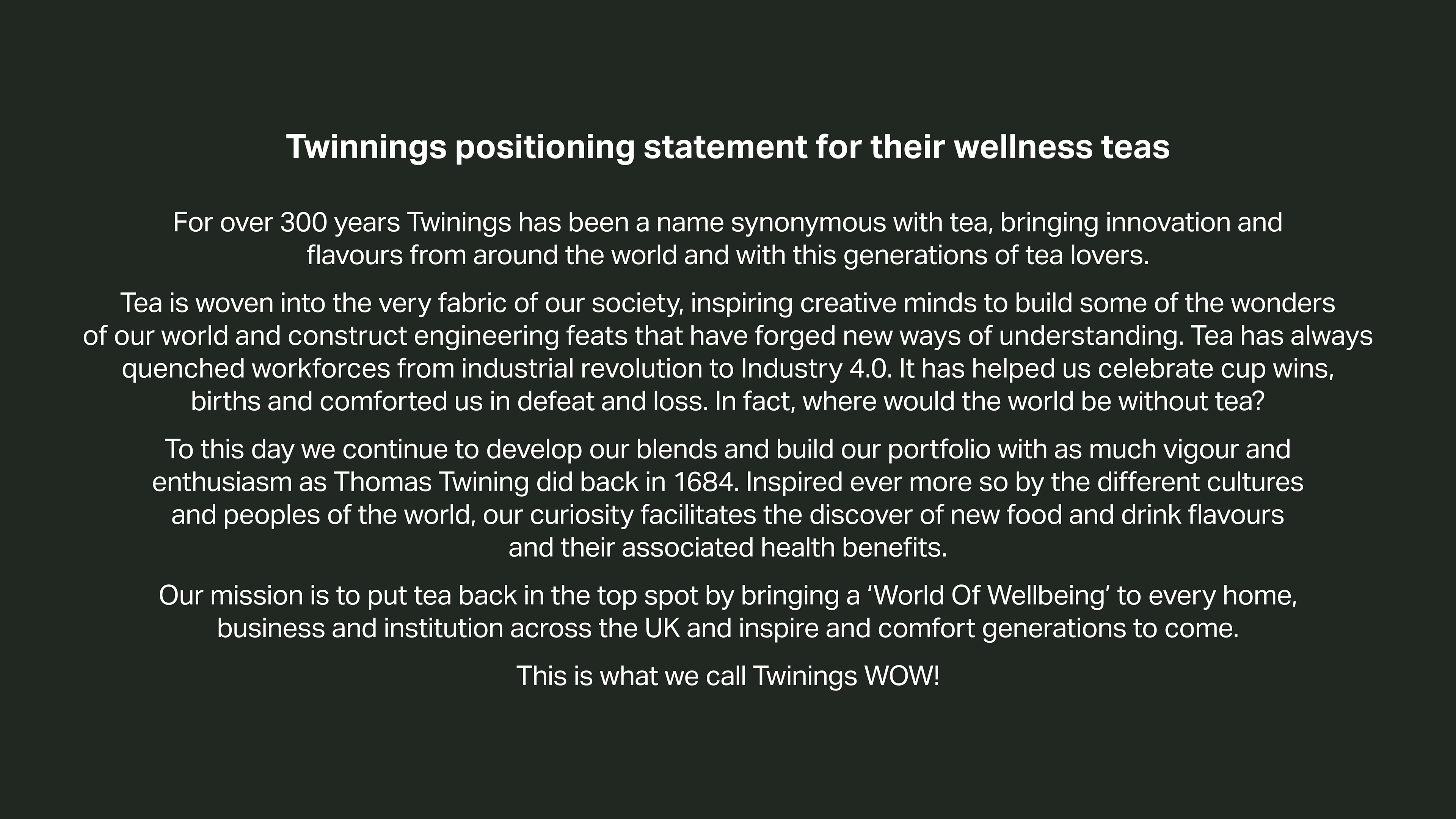 I also specialise in writing brand position pieces as both part of the brand DNA and for brand campaigns.