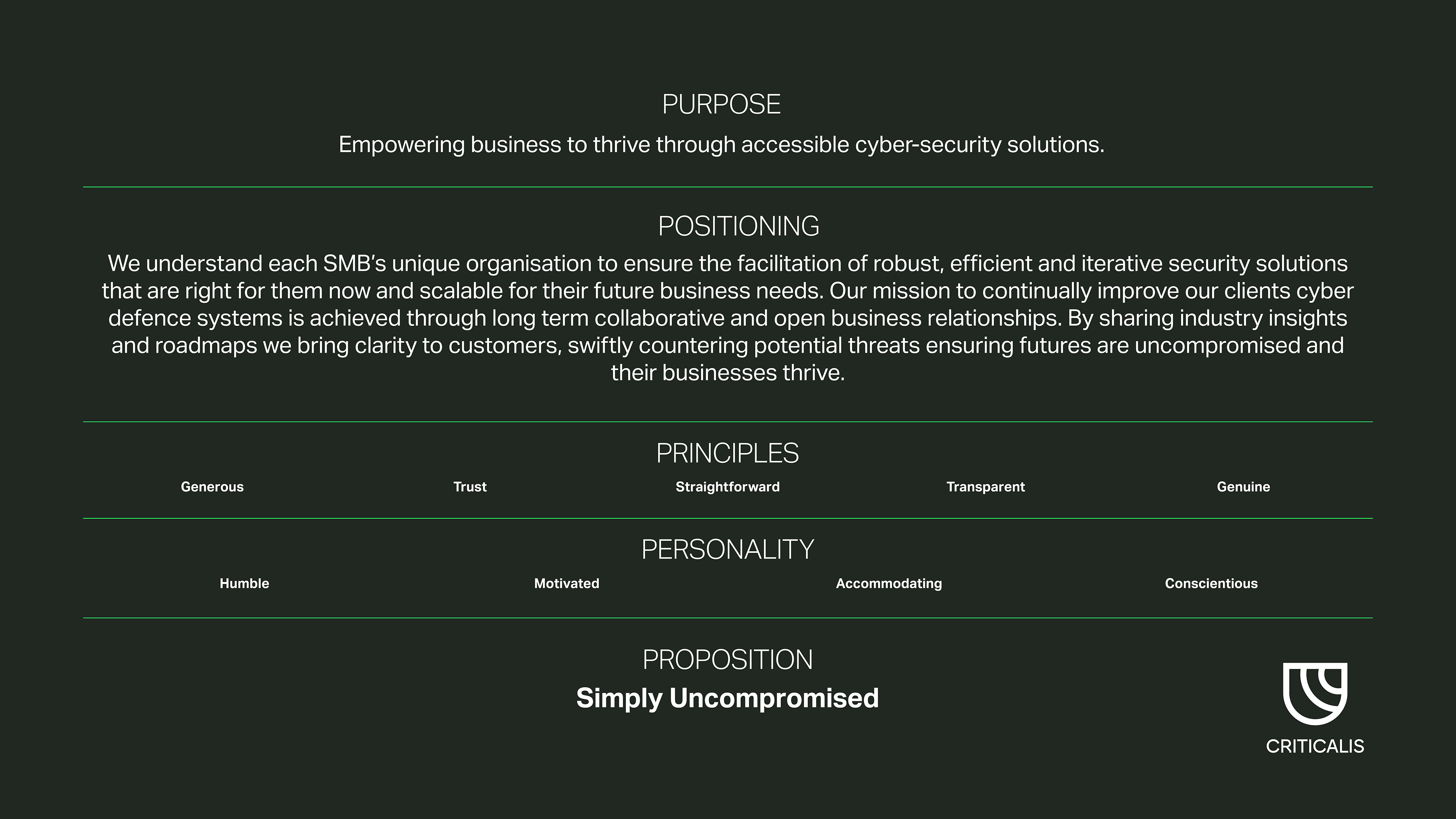 These brand DNA’s were developed collaboratively and agreed over a process of workshops, follow up meetings and feedback.